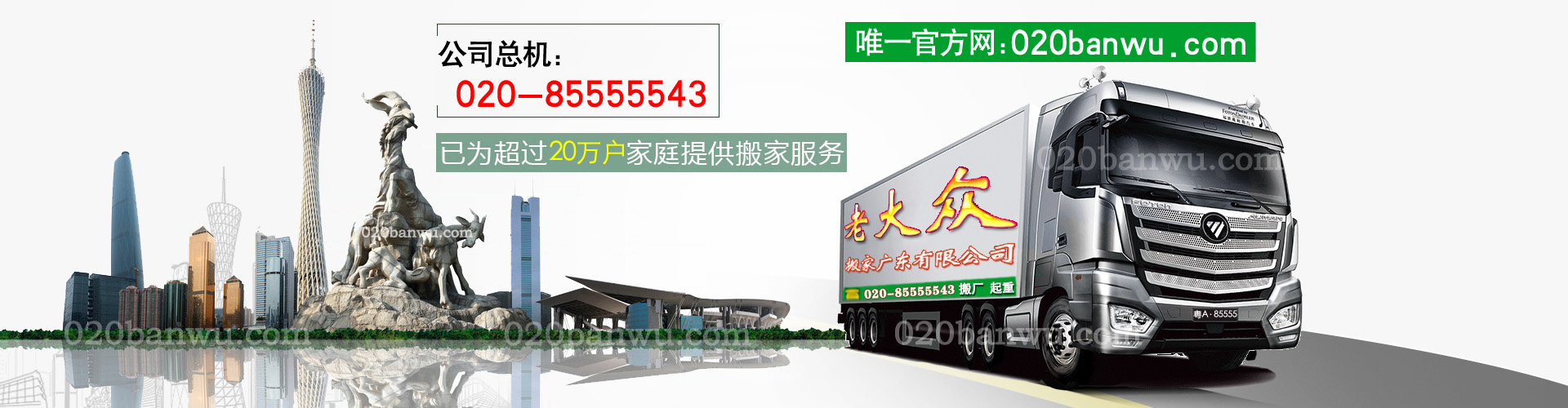 老大眾搬家(廣東)有限公司,經發展研究中心評定為全國成立較早、規模較大的專業搬遷企業,10多年來,“老大眾”由最初的3輛營運車輛,10人的搬運隊,發展成為擁有各類作業車輛30臺,員工200多人,管理完善,初具規模,是廣東省內較活躍的搬家公司,近年來承攬了大型起重吊裝工程。老大眾搬家(廣東)有限公司設有黃埔、天河、海珠、荔灣、越秀、白云、番禺等分部,可就近安排貨車上門。